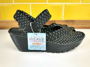 SKECHERS memory foam Stretch tissage des Sandales Compensées Noir Argent Taille 3.5 NEUF | eBay
