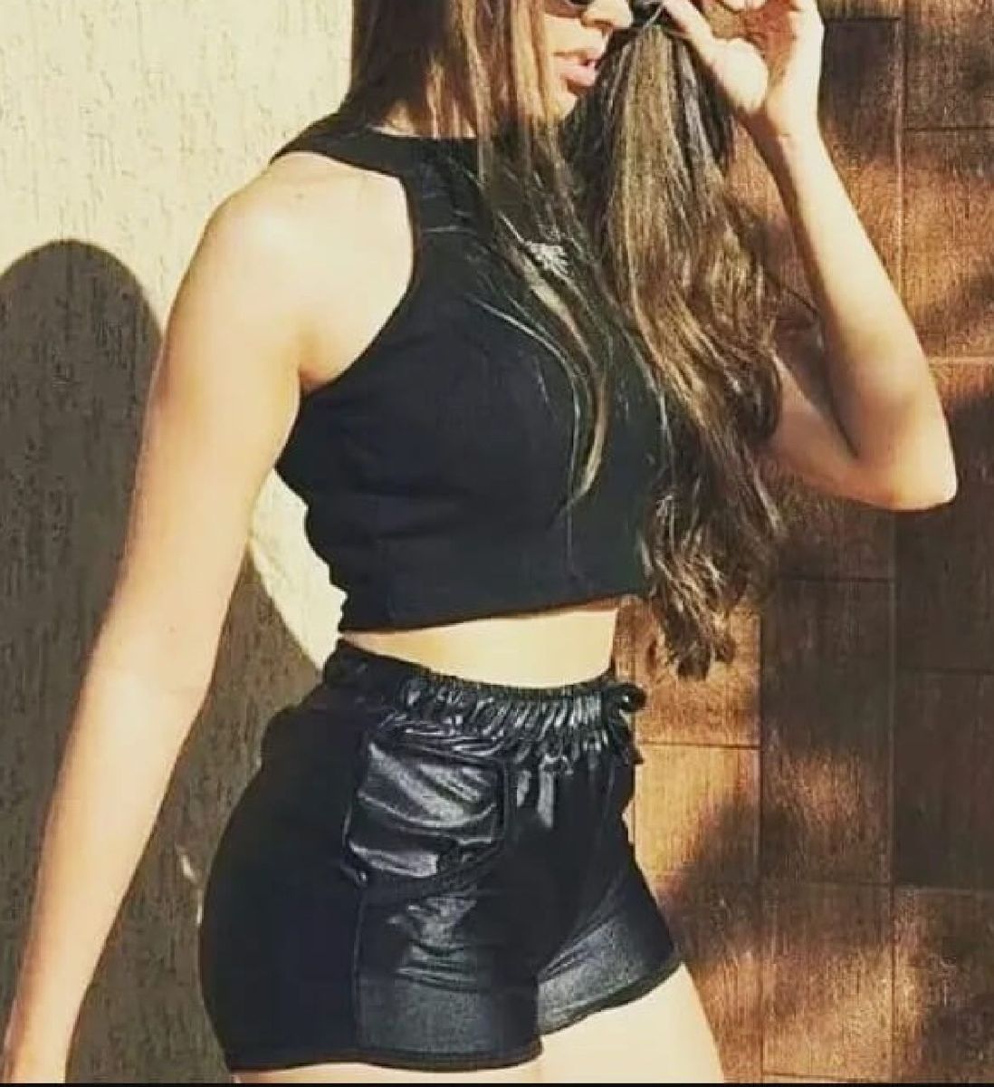 Short Preto Brilhoso | Shorts Feminino Usado 49621045 | enjoei