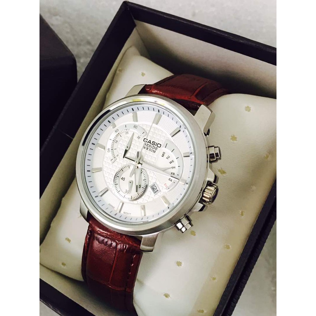 Casio Beside Men's Leather Strap Watch BEM-506 | Lazada
